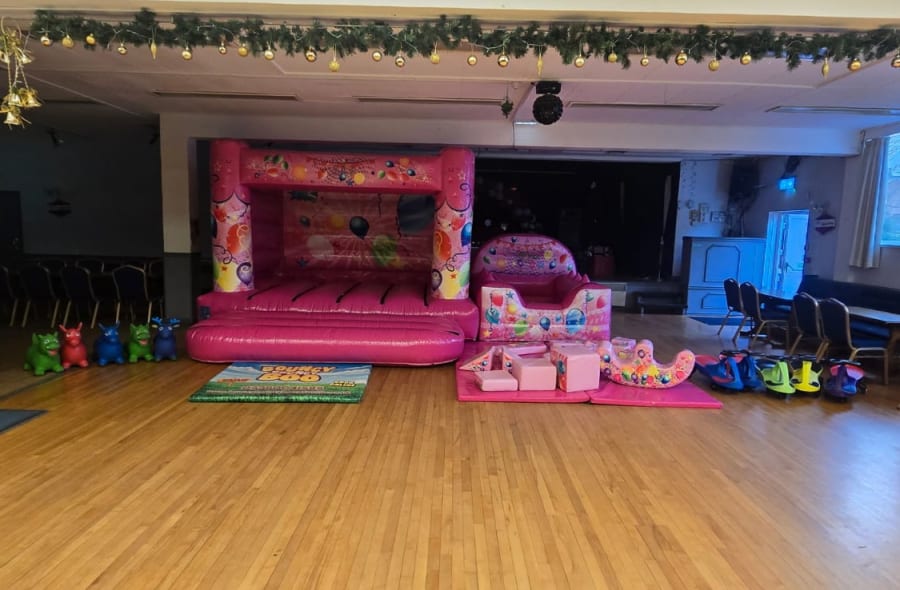 Indoor Bouncy Castle, Softplay & Ride On Package (Pink)