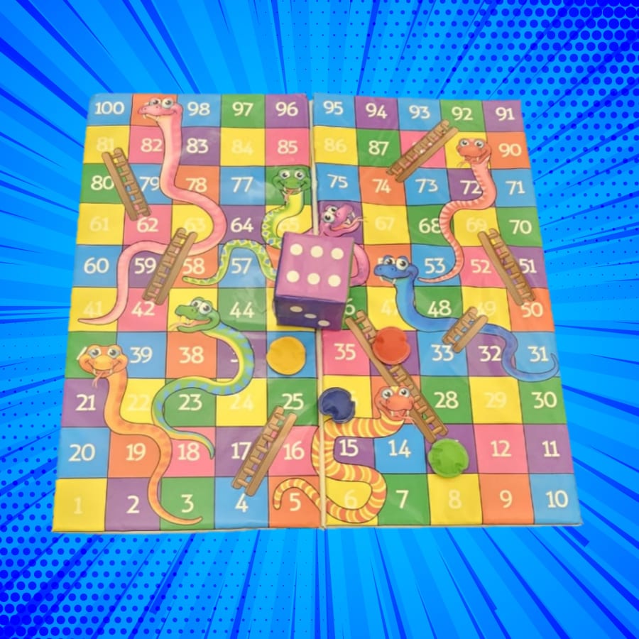 Our Snakes & Ladders game features a large, colourful mat that is designed with a variety of snakes and ladders. It's an easy game to learn and can be played by people of all ages.