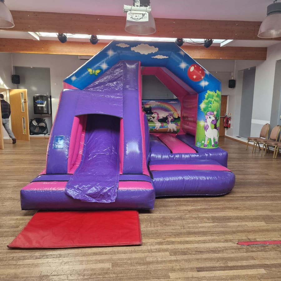 Whether you're hosting a birthday party, school event, or corporate gathering, our unicorn castle with slide is the perfect addition. Book today and give your guests a magical and memorable experience they won't forget!