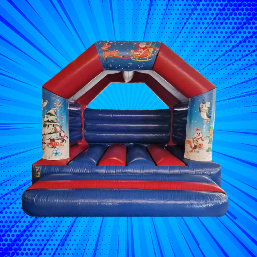 If you're looking at hosting a Christmas party or festive event then our Christmas theme bouncy castle would be ideal. Featuring Rudolph pulling Santa in his sleigh at the top and the little penguins and an elf in the snowy scenes at the sides, this castle has a joyous feel, perfect for the festive season.