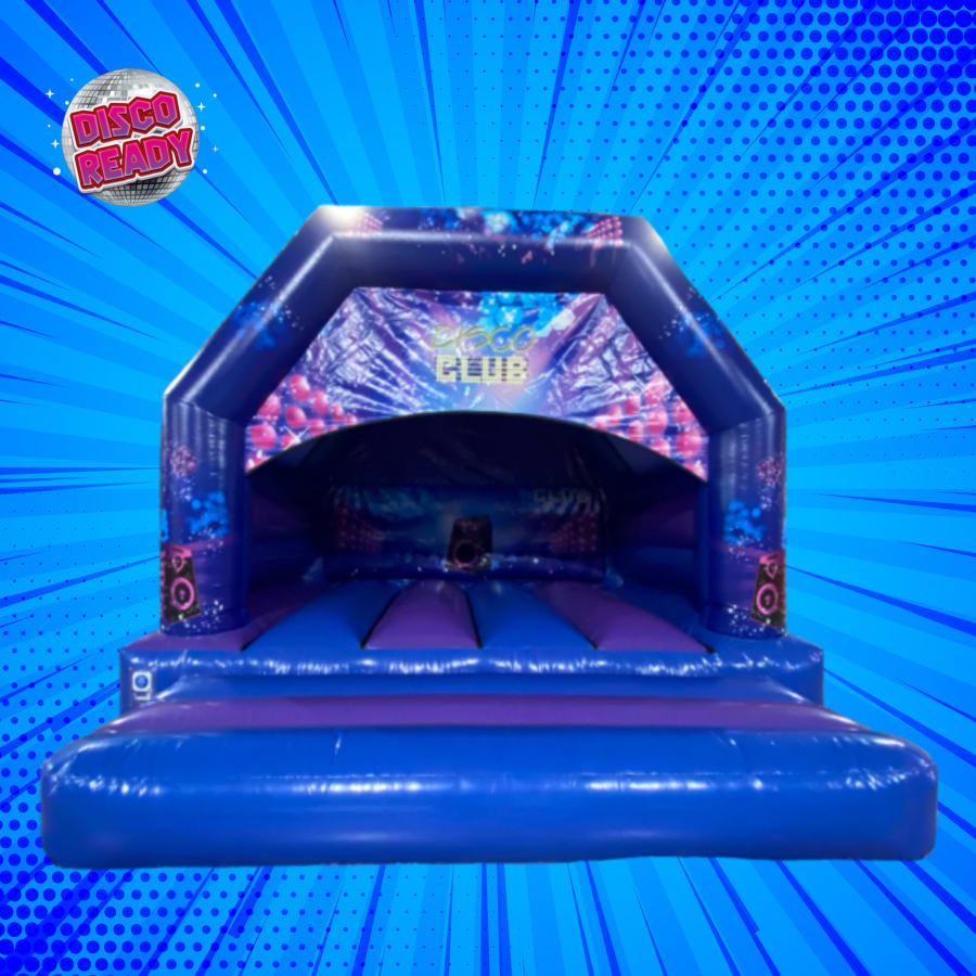 Blue & Purple Disco Bouncy Castle Hire in Wolverhampton, Walsall, Dudley, Telford, Birmingham, Cannock, Lichfield and Stafford.