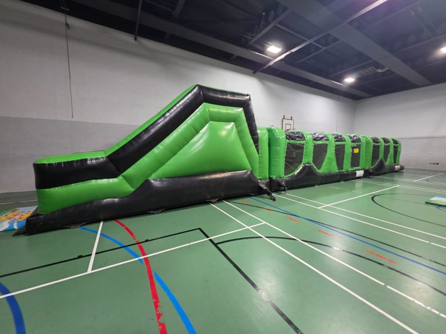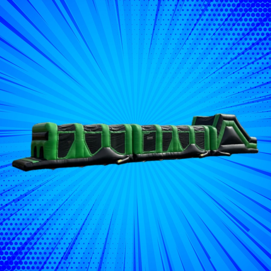 Introducing our Green and Black 65ft Assault Course – a thrilling inflatable adventure that combines vibrant aesthetics with formidable challenges. With an impressive length of 65 feet, this course features diverse obstacles, offering an engaging experience for individuals or teams.