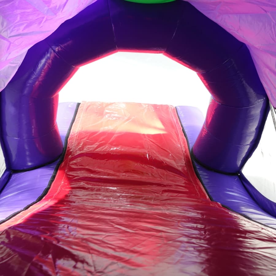 Designed to look like a scene straight out of Jurassic Park, our Dinosaur 3D Assault Course features a large 3D T-Rex mouth entrance and a slide exit.