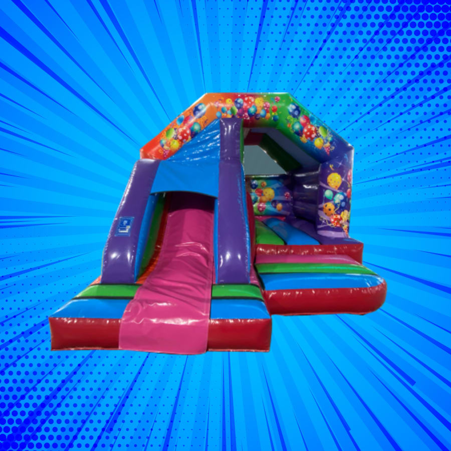 Bring big fun to your event with our Multi-Coloured Slide Combo Castle. This bright, eye-catching inflatable combines a classic bouncy area with an exciting slide for double the entertainment.
