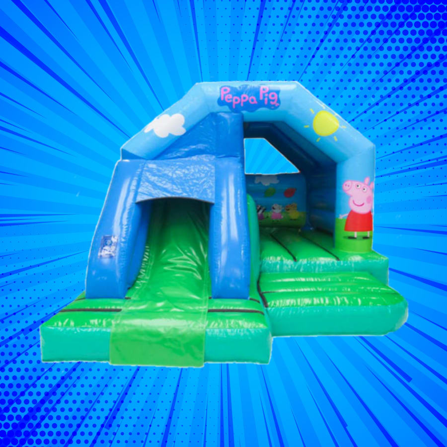 Peppa Pig Front Slide Combo Castle Hire in Wolverhampton, Walsall, Dudley, Telford, Birmingham, Cannock, Lichfield and Stafford.
