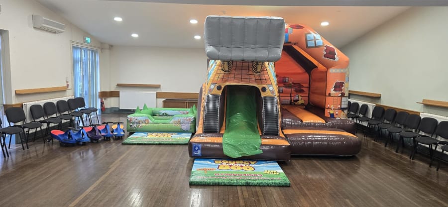 Not all of our equipment will fit in every venue due to some height restrictions. Please check the ceiling height with the venue and the inflatable height (shown on the 'size' tab on each product) before booking. We have added a list of our equipment below each venue listing showing the items we have set up there before.