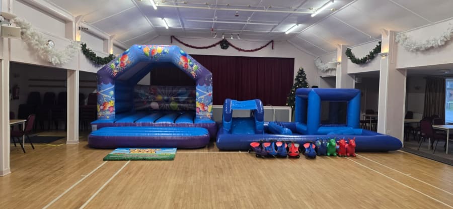 Not all of our equipment will fit in every venue due to some height restrictions. Please check the ceiling height with the venue and the inflatable height (shown on the 'size' tab on each product) before booking. We have added a list of our equipment below each venue listing showing the items we have set up there before.
