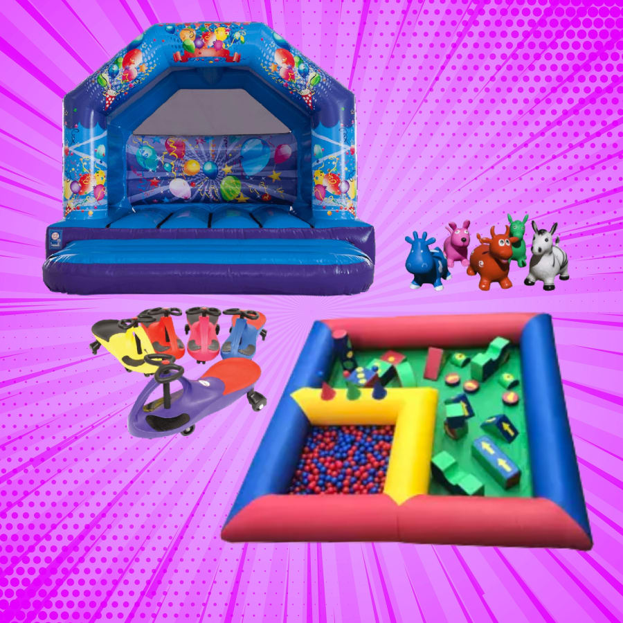 This package includes a children's castle, soft play area, 5 didi cars and 5 happy hoppers.