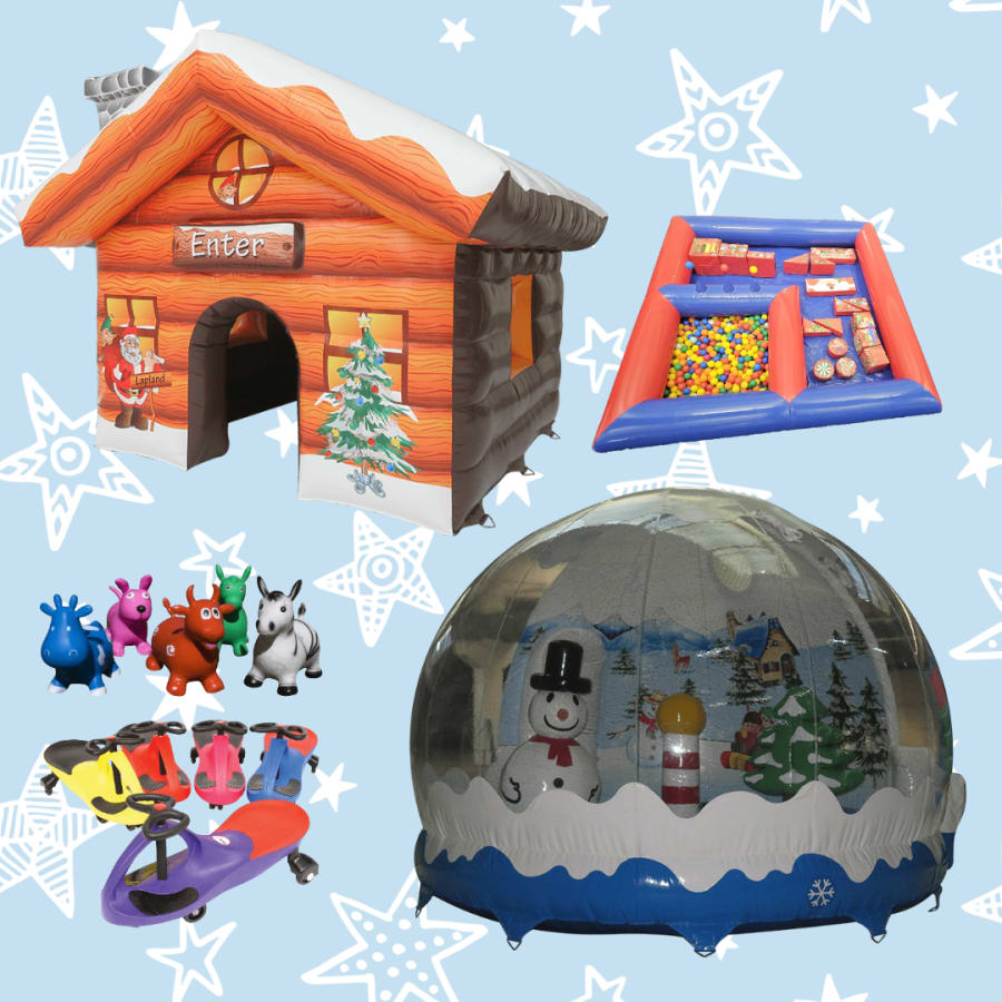 This package includes santas grotto, Snowglobe, softplay and ride ons.