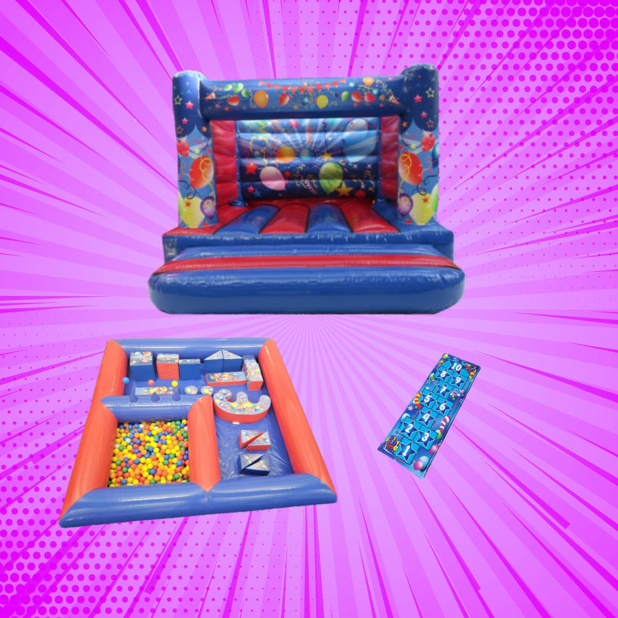 This package includes a castle, soft play area and a hopscotch mat in blue.
